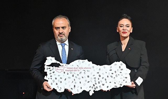 Duygulu anların yaşandığı etkinlikte konuşan Bursa Büyükşehir Belediye Başkanı Alinur Aktaş, tarih boyunca farklı medeniyetlere ev sahipliği yapan Türkiye’nin gerek stratejik konumu gerekse tarihî zenginliği ile yıllar boyunca birçok kuşatmanın ve savaşın adresi olduğunu hatırlattı. Bütün zor zamanlarda her yaştan insanın, tek yürek ve tek bilek olarak birlik ve beraberlik için mücadele ettiğini ifade eden Başkan Aktaş, “Bu yeniden varoluş mücadelesinde kadınlarımızın rolü bir hayli fazla. Bu dönemde kadınlarımızın gerek cephede gerekse cephe gerisinde verdiği destek hepimiz için örnek olmalı. Gazi Mustafa Kemal Atatürk’ün şu sözünü hatırlayalım: “Milli mücadeleyi gerçekleştiren doğrudan doğruya milletin ta kendisidir.” Millî Mücadele’de Türk milleti, kadınıyla erkeğiyle mücadeleyi kendisine ülkü edindi. Bursa Büyükşehir Belediyesi olarak bizler de bugün, Cumhuriyetimizin 100. Yılında Çanakkale Cephesi’nde ve Kurtuluş Savaşı’nda eşsiz mukavemet göstererek tarihte iz bırakan Türk kadınlarını yâd etmek için bir araya geldik. 104 yıl geriye giderek millî mücadele dönemindeki kadın kahramanlarımızın cesaret ve özverilerine yeniden tanıklık edeceğiz. Kara Fatmalar, Nene Hatunlar, Şerife Bacılar… Bu aziz milletin içinde hiç eksik olmaz. Her devirde yeni bir ruhla cemiyet içinde yerlerini alırlar. Biz bu yönden Allah’ın lütfuna mazhar olmuş bir milletiz. Çok şükür bizim kahramanlarımız hiçbir zaman bitmez. Bu kutlu toprakların birliğinin korunmasında canını ortaya koyan bütün ecdadımızı rahmet ve minnetle yâd ediyorum” diye konuştu.Programın sonunda okunan İstiklal Marşı’na tüm salon büyük bir coşkuyla eşlik ederken, projenin mimarı Ehli Sanat Derneği yöneticisi Eda Sürmeli, etkinlik öncesi fuaye alanında hazırlanan ve tüm kadınların parmak izlerini taşıyan Türkiye Haritası panosunu da Başkan Aktaş’a hediye etti.GazeteAbc